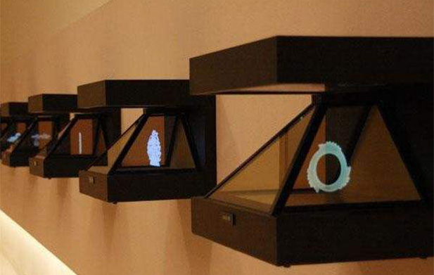 70度全息成像系統是當今流行的展覽設備。它結合了實體模型,利用鍍膜玻璃的折射和反射原理,將虛像投射到成像空間。通過三個微調表面的投影和融合,形成一個真實的圖像內容,給人一種真實的“物體在其中”的感覺。
